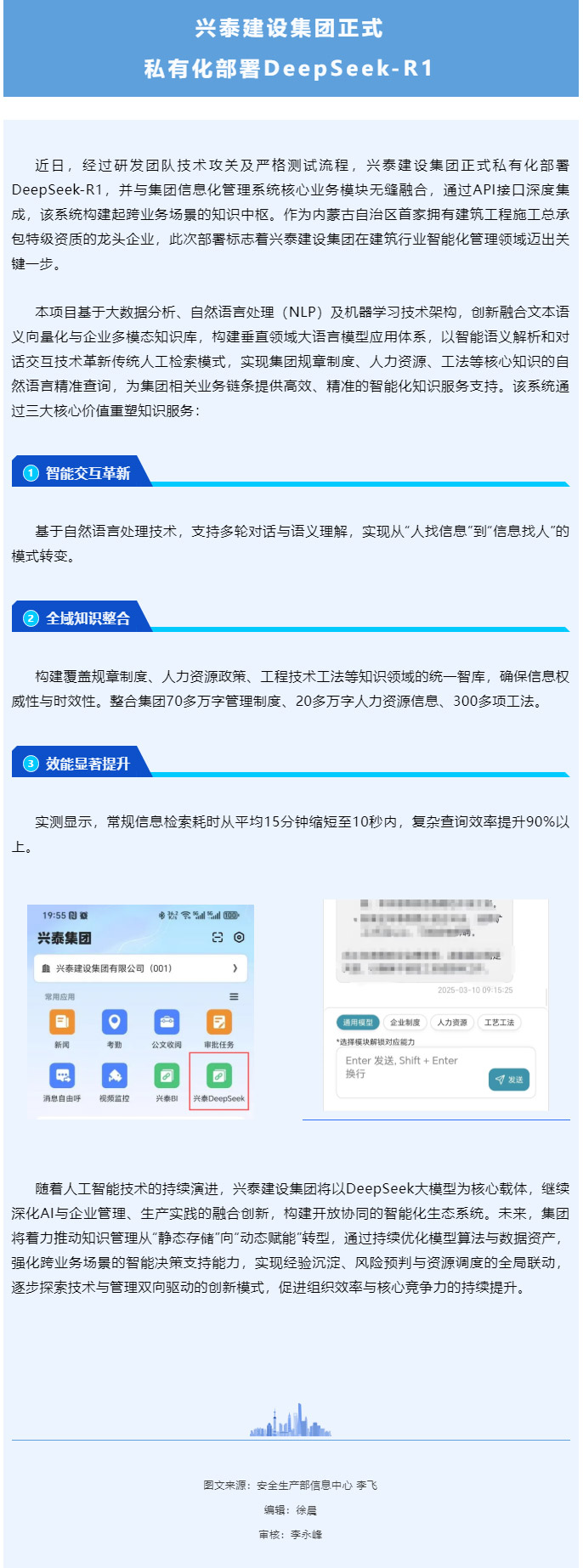 智啟新程|興泰建設(shè)集團(tuán)DeepSeek與業(yè)務(wù)系統(tǒng)集成賦能企業(yè)培育新質(zhì)生產(chǎn)力